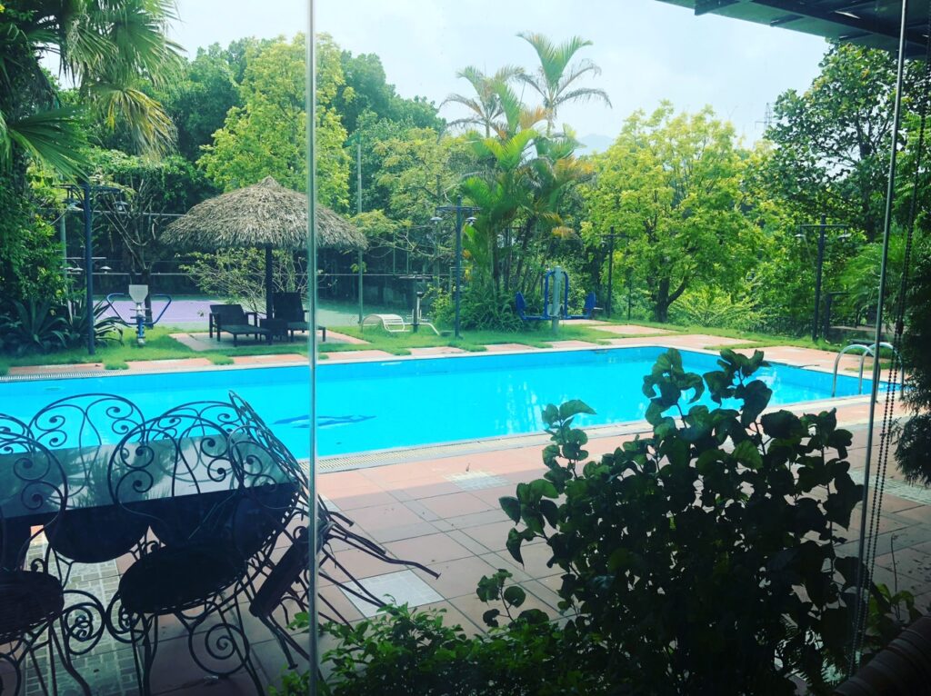 – Bể bơi ngoài trời rộng rãi, nước xanh trong